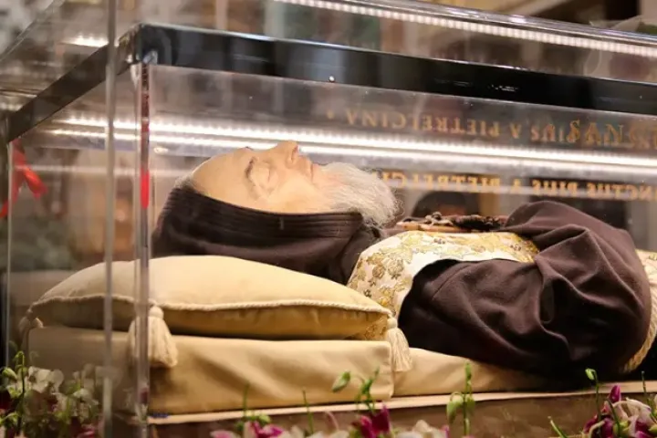 أنعم الله على بادري بيو منذ طفولته برؤية العذراء مريم. كما أنّ محبّة هذا القديس لها تجسّدت بوضوح في تعاليمه، هو من كان يحثّ المؤمنين على البقاء بجوار هذه الأمّ السماويّة لأنّها طريقنا صوب الفردوس الأبدي. عاش هذا القديس خدمته الكهنوتيّة بكلّ أمانة وغيرة، وأسّس «جماعات الصلاة» ومستشفى «بيت التخفيف من الألم». في صباح يوم الجمعة 20 سبتمبر/أيلول 1918، حين كان بادري بيو يصلّي أمام المصلوب في خورس الكنيسة الصغيرة القديمة، حاز نعمة سمات يسوع المسيح، وظلّ متسلّحًا بها، طوال خمسين عامًا حتى تاريخ مماته في 23 سبتمبر/أيلول من العام 1968.