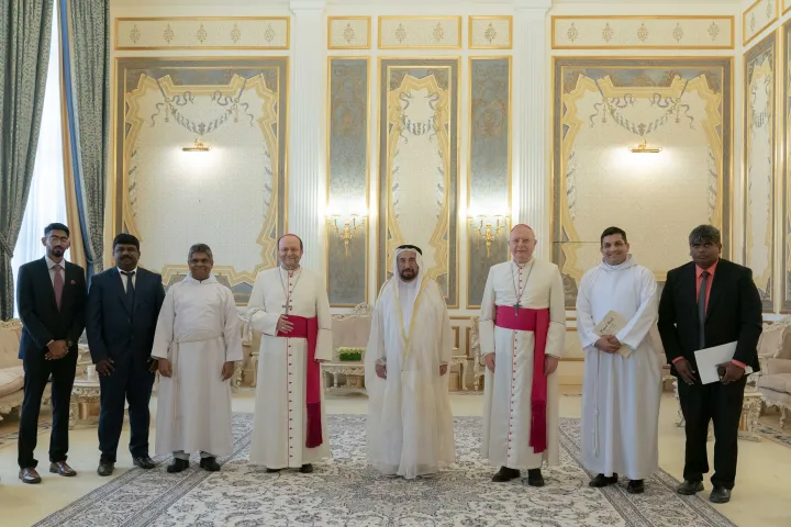 من أجل تعزيز العلاقة بين الكنيسة الكاثوليكيّة والجهات الحكوميّة في الإمارة، التقى الشيخ سلطان بن محمد القاسمي حاكم الشارقة في قصر البديع مسؤولي الكنيسة الكاثوليكيّة على رأسهم الأسقف بول هيندر النائب الرسولي السابق لجنوب شبه الجزيرة العربيّة، وباولو مارتينيلّي النائب الرسولي الحالي.