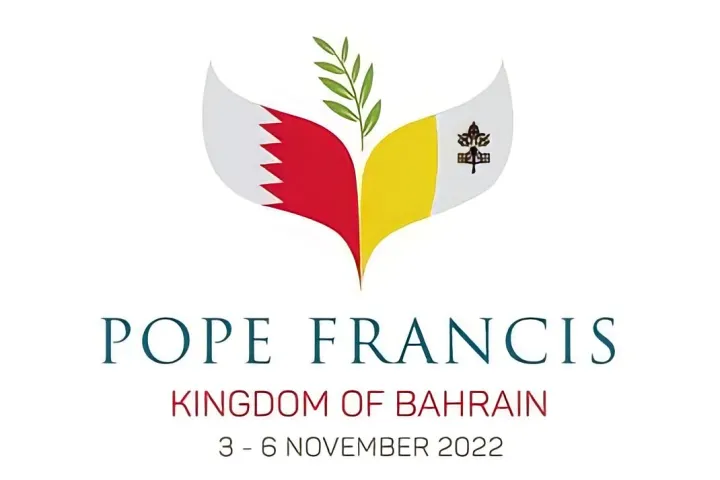 وتجدر الإشارة إلى أن الشعار الذي اعتمدته حاضرة الفاتيكان للزيارة يتكوّن من علمَي الكرسي الرسولي ومملكة البحرين ملتصقَيْن على شكل يدَيْن، ويشيران إلى التزام التلاقي بين الأمم وإلى روح الأخوّة الإنسانيّة والنيّة الحسنة التي تجمعهما. كما أن شكل اليدَيْن المرفوعتَيْن معًا هو مناشدة للخالق من أجل السلام الذي تمّ التعبير عنه بغصن زيتون (رمز السلام) يقع في منتصف العلمَيْن. وقد لُوِّنَتْ عبارة «البابا فرنسيس» بالأزرق للإشارة إلى أن الرحلة الباباويّة موكلة إلى شفاعة مريم العذراء، راعية النيابة الرسوليّة في شمال شبه الجزيرة العربيّة.