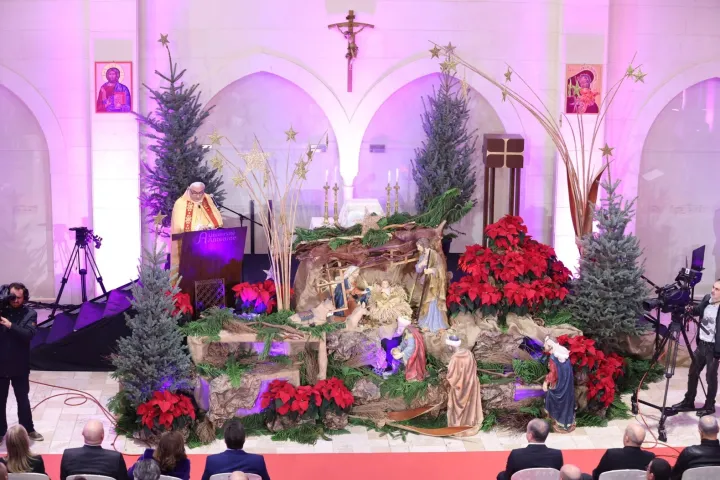 -أراك في مذود ترقد بعيدًا عن سريرك وقريتك وأقربائك وأنت «الكائن» الذي لا يحتاج إلى مسكن أو هويّة ليكون، أراك في مذودٍ لأنّك اخترت أن تعيش ما يعيشه كل غريب عن أرضه وكل مهجّر من بيته لتقول له إنّه موضوع عناية الله الآب وإن موطنه الحقيقي وسكناه الأبدي هو في قلب الله، وأحني رأسي أمامك وأفكّر بهؤلاء الذين غرقوا على طريق الغربة والذين يعاملون كغرباء في وطنهم والذين هُجِّروا وماتوا وعيونهم متّجهة إلى الزيتونة التي غرسوها وإلى البيت الذي بنوه حجرًا وحجرًا. وأفكّر بهؤلاء الذين هجّروا جيرانهم ورفاق دربهم بسبب حقد قديم أو من أجل تحقيق مشروع وهمٍ، وأصلّي: