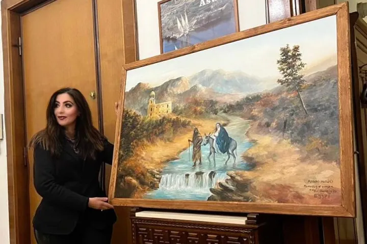 وفي ختام لقائها الأب الأقدس، أهدته متولي إحدى أهمّ لوحاتها السبع، وهي محطّة دير جبل الطير في سمالوط الذي بنته الملكة هيلانة والدة الملك قسطنطين.