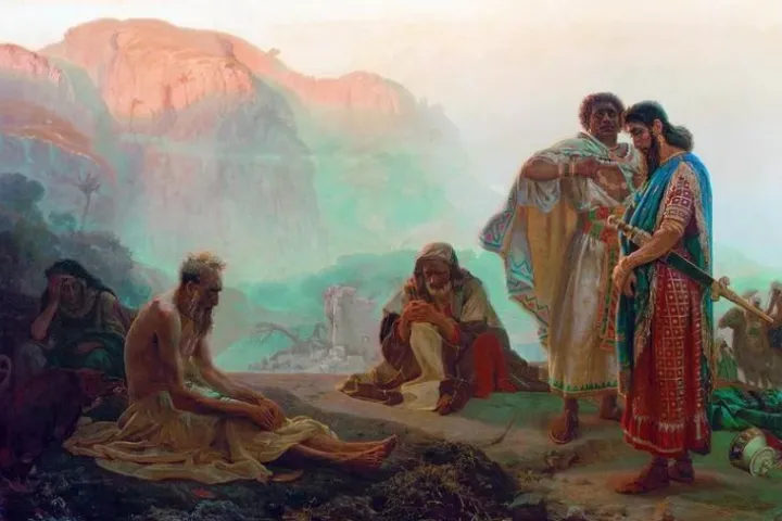 وها نحن أمام رجل بارّ، لا غبار على إيمانه وتقواه، وهو لم يرتكب أيّ إثم يستوجب العقاب. لكن على الرغم من ذلك، فهو تلقّى أشدّ العذابات، وهذا الواقع حلّ به برضا ربّه الذي جاء تحدّيًا لتحدّي الشيطان. لكن في النهاية، يسقط الشرّ وينتصر وجه أيّوب أيّ الخير.