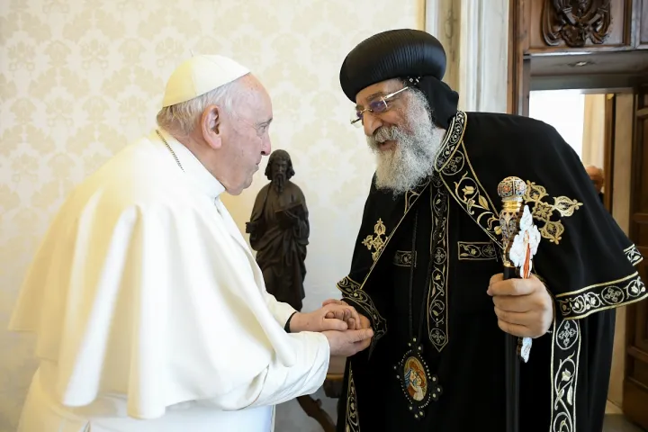 تمحورت كلمة البابا فرنسيس، في خلال لقائه اليوم بابا الإسكندريّة للأقباط الأرثوذكس تواضروس الثاني في الفاتيكان، حول أهمّية اللقاء التاريخي بين الباباوين بولس السادس وشنودة الثالث منذ خمسين عامًا بالنسبة إلى المسيرة المسكونيّة والصداقة بين الكنيستين الكاثوليكيّة والقبطيّة الأرثوذكسيّة.