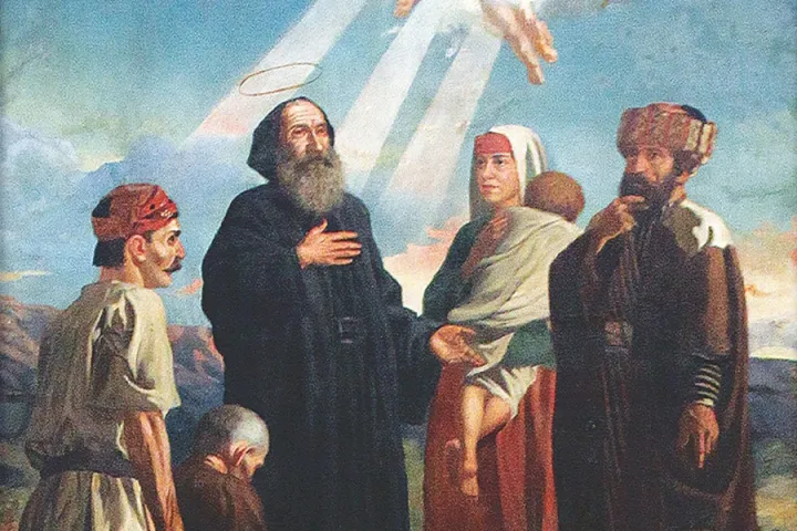 بعدئذٍ، هجر وطنه الأمّ، قاصدًا أحد الأديار في نصيبين حيث ترهّب. انكبّ على قراءة الكتب المقدّسة. وحين رغب رئيسه في ترقيته إلى درجة الكهنوت، اعتذر تواضعًا، وهرب إلى مغارة في أحد الجبال. ظل ساكنًا هناك لأعوام عدّة، منشدًا حياة النسك والتقشف، مكرّسًا حياته بكليّتها للصلاة. ثم بكى طويلًا ومن الأعماق تائبًا على خطيئته، فاجتذب كثيرين إلى عيش التوبة الحقيقية. وكان سببًا في رد كثرٍ من عبدة الأوثان إلى الإيمان القويم، وجاء الناس إليه من كلّ حدب وصوب، يطلبون صلاته وشفاعته. فمنحه الربّ نعمة صنع الآيات، ولا سيّما شفاء المصابين بداء المفاصل.