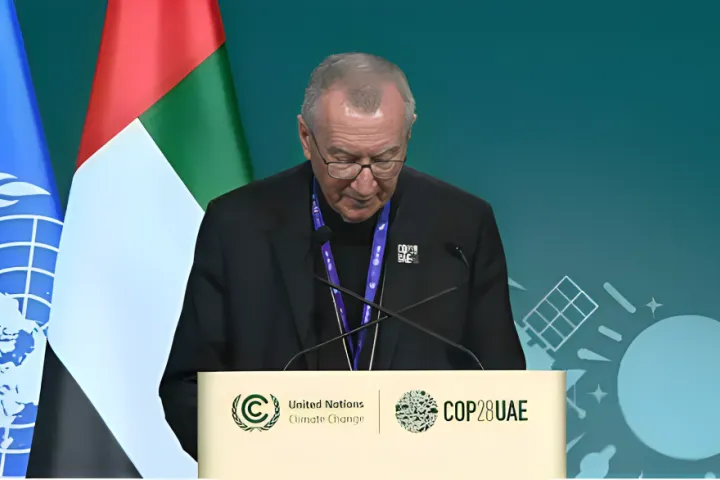 جاء ذلك في كلمة الحبر الأعظم ضمن مؤتمر الأطراف في اتفاقية الأمم المتحدة الإطارية بشأن تغيُّر المناخ المنعقد في دبي-الإمارات العربيّة المتحدة. وألقى الكلمة اليوم أمين سر دولة حاضرة الفاتيكان الكاردينال بييترو بارولين الذي ترأس وفد الكرسي الرسولي في المؤتمر بعد تعذّر حضور البابا فرنسيس لأسبابٍ صحّية.