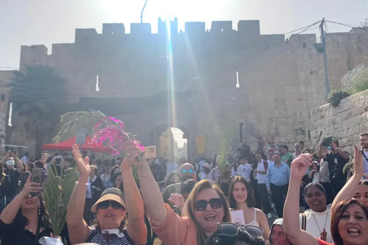 وفي المسيرة، رفع المشاركون سعف النخيل المزينة وأغصان الزيتون وردّدوا التراتيل الخاصة بالمناسبة، قبل أن تختتم بصلاة في ساحة كنيسة القديسة حنة، لتنطلق بعدها الفرق الكشفية من أمام الدير لتجوب شوارع القدس، وصولًا إلى "الباب الجديد" احتفالًا بالمناسبة.