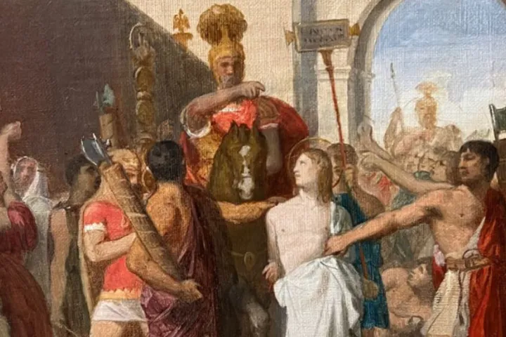 بعدئذٍ، أخرجوه من السجن، وبدأ الحاكم يتحدّث معه بلطف، ويعده بمنحه الوظائف والمال إذا قدّم السجود للأوثان، لكنّه رفض عرضه وأخذ يحضّه على الإيمان بالمسيح. حينها، أمر بقطع رأسه. وفي طريقه للاستشهاد، أسرعت أمّه واخترقت جماهير عبدة الأوثان وصرخت: «يا ابني، حيٌّ هو الله الذي تموت لأجله، تشجّع، وتذكّر الحياة الأبديّة. وارفع قلبك إلى السماء، إذا كان لك فيها مجد لا يزول»! وبعدها قُطِعَ رأسه ونال إكليل الشهادة في العام 180.