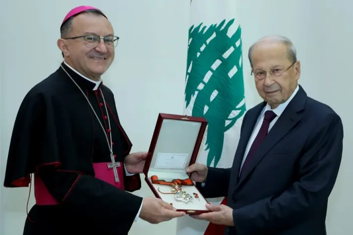 وتقديرًا لجهوده، منح عون السفير البابوي وسام الأرز الوطني من رتبة ضابط أكبر.