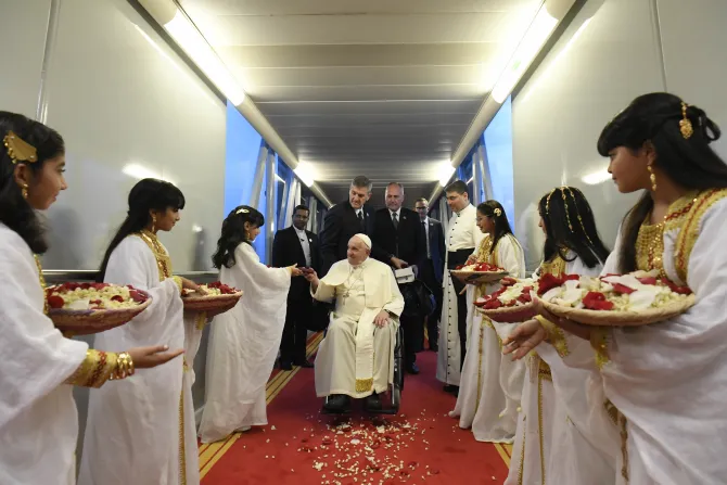 وكان البابا قد وصل بعد ظهر اليوم إلى البحرين في زيارة تستمرّ أربعة أيّام يشارك في خلالها في «ملتقى البحرين للحوار: الشرق والغرب من أجل التعايش الإنساني». ولدى وصوله إلى مطار الصخير الدولي، كان في استقباله الملك حمد بن عيسى بن سلمان آل خليفة مع وفد رسمي. واصطف الناس على جانبي الطريق المؤدّية من المطار إلى القصر الملكي، حاملين أعلام البلاد والفاتيكان لتُطلق 21 ضربة مدفعيّة ترحيبًا به في مكان إقامة الملك.