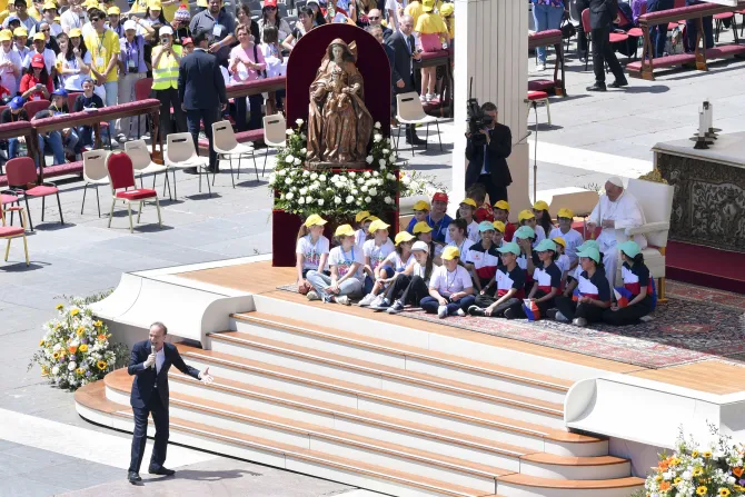 قال الحبر الأعظم للأطفال: «لنصلِّ لله، الله الآب، الله الابن، والله الروح القدس. كم عدد «الآلهة»؟ واحد في ثلاثة أشخاص: الآب الذي خلقنا جميعًا، الذي يحبّنا كثيرًا... نطلب دائمًا من الله، أبينا الذي في السماوات، أن يرافقنا في الحياة وأن يجعلنا ننمو. ما هو اسم الابن؟ يسوع! نصلّي ليسوع كي يساعدنا ويكون قريبًا منّا. وعندما نتناول القربان نستقبل يسوع، وهو يغفر لنا جميع الذنوب».
